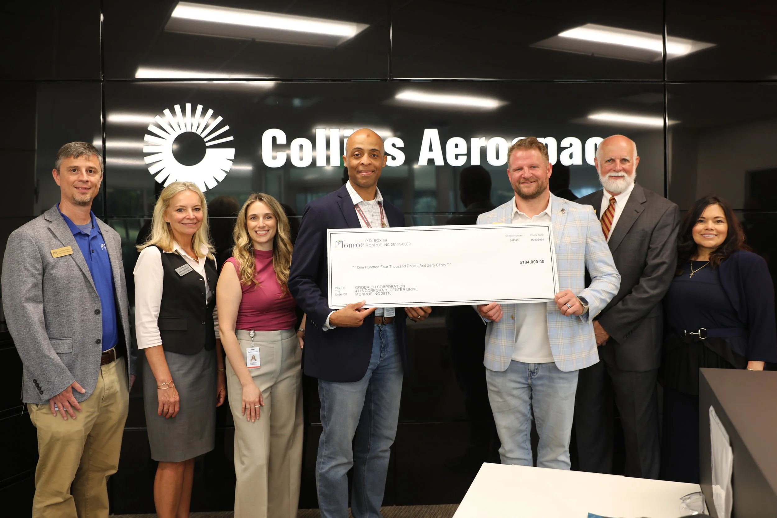 The City of Monroe presented an economic development incentive check to Collins Aerospace on July 7, 2025, at the company’s Monroe facility.