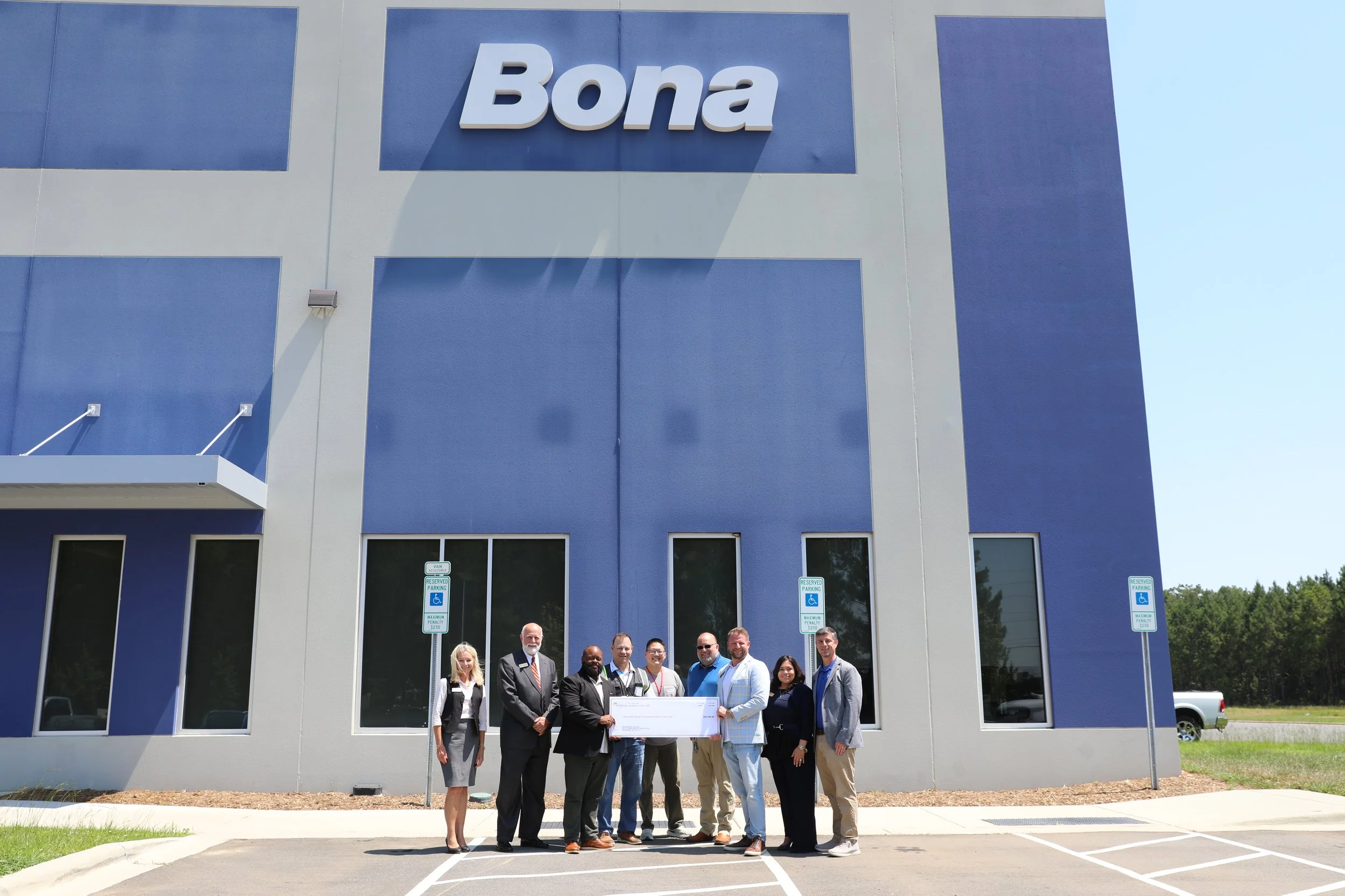 The City of Monroe presented an economic development incentive check to Bona on July 7, 2025, at the company’s Monroe facility.