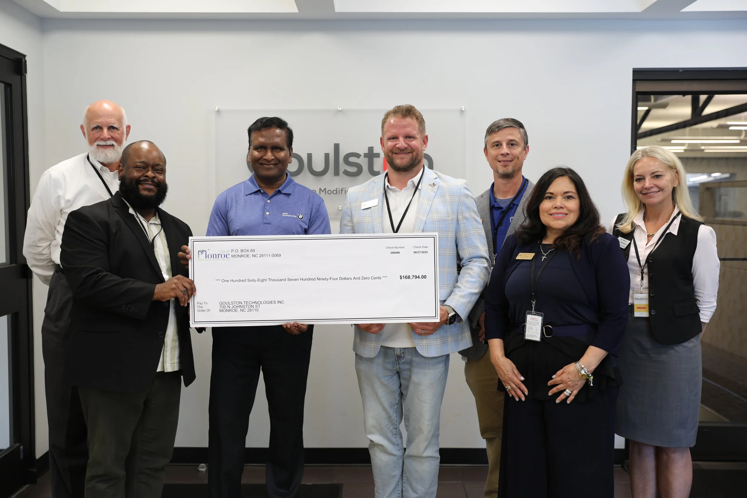The City of Monroe presented an economic development incentive check to Goulston Technologies on July 7, 2025, recognizing the company’s continued investment in its Monroe facility and fulfillment of two ongoing development agreements with the City.