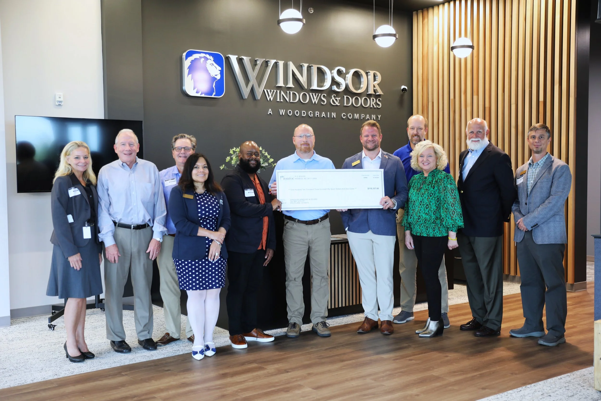 The City of Monroe presented an economic development incentive check to Windsor Windows & Doors, recognizing the company’s continued investment at its Monroe facility and fulfillment of its incentive agreement with the City.